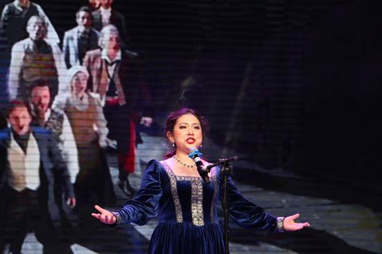 夏飏老师一如既往的优雅动人,你看,她身着一袭宝蓝色礼服,缓缓走上舞台,在灯光的映照下,唱起了振奋人心的歌曲《Stars》;与此同时,大屏幕上放映出为和平和自由而不懈斗争的传奇故事。从老师悠扬的歌声之中,观众们闭上双眼,静静聆听,感受经典之声,品味那永恒的故事。