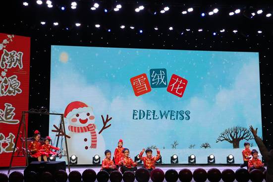 穿着新年红装,一群可爱的小朋友跑向舞台,为我们演唱经典的英文歌曲《雪绒花》。随着跳动的音符,灵动的节奏,可爱的小朋友们在舞台上毫不怯场,散发出独特的魅力,他们甜美可爱的嗓音给观众带来了温暖,听的台下观众心都要融化了。