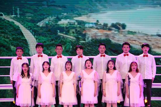 很快就到了晚会的最后一个节目。时值新中国成立70周年,举国欢庆,台上的所有演员们为祖国献上了大合唱《国梦乐章追梦起航》,歌颂祖国70周年的伟大成就和巨大变化,同时也展望未来,他们的蓬勃朝气,感染了在座的所有人。