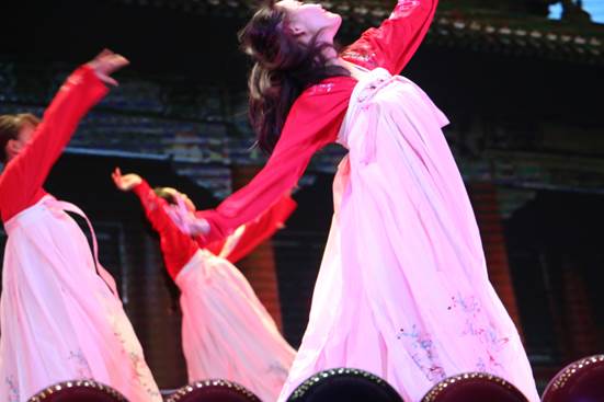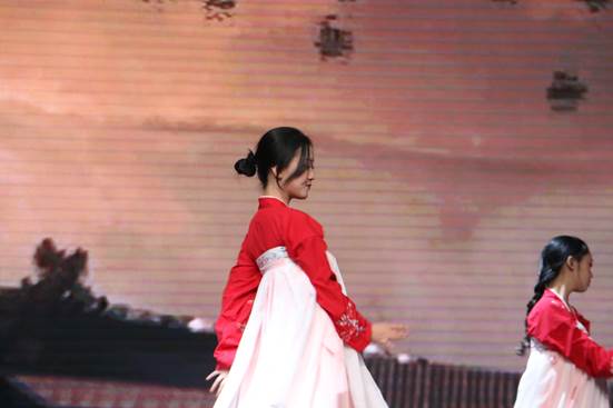 接下来,舞蹈《清平乐》带领观众穿梭时空隧道,走进盛世大唐。身着红色襦裙的演员们就像盛唐的美女,四肢轻盈舞动着,四月春风不及她们半点温柔,看着让人心动不已。一曲终了,仍然令人回味无穷。