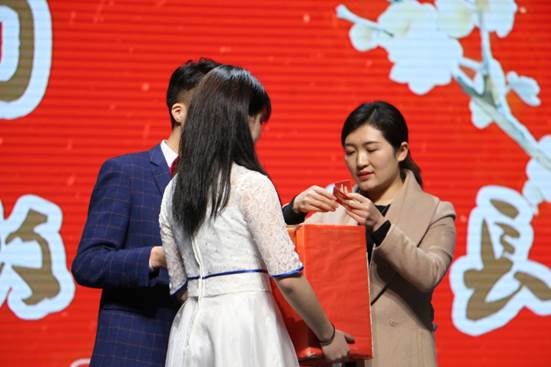 接下来的第三轮抽奖奖品更加丰厚:Mac口红。香港现代教育集团重庆公司教学总监王启利女士上台致辞并抽奖,她向观众们传达了新年祝福,表达了自己喜悦和激动的心情,并祝福JJB竞技宝蒸蒸日上,然后抽取幸运观众号码,观众们纷纷尖叫呐喊。