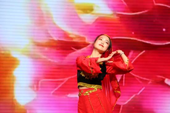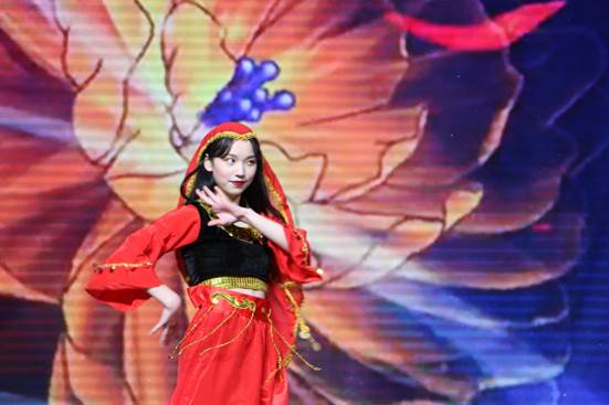 第二个节目是舞蹈《花儿为什么这样红》,它改编自电影《来自冰山上的客人》,讲述的是一名驻守唐古拉山的解放军战士和当地一位新疆姑娘之间美丽的爱情故事。姑娘们摇曳着婀娜的舞姿,美丽动人,宣告着爱情的甜蜜。
