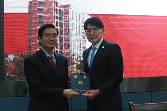 讲座前,张艳副书记代表学校热烈欢迎黄剑平员工回到母校开启讲座,并介绍了他的简历。李克勇董事长为他颁发了JJB竞技宝客座教授证书。
